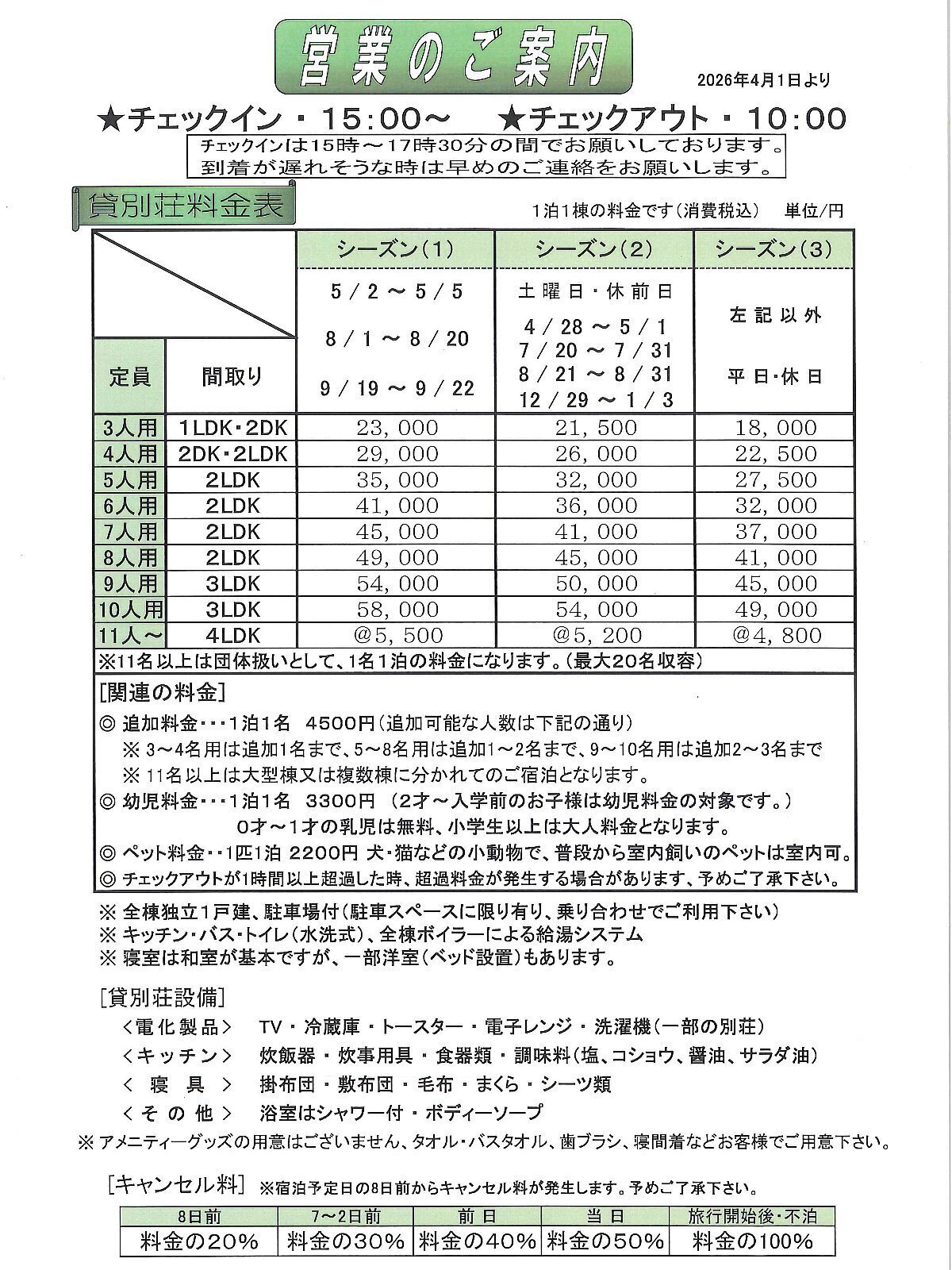 Season (2) Saturdays and days before holidays/ / April 28th to May 1st, July 18th to July 31st, August 21st to A…Continue reading